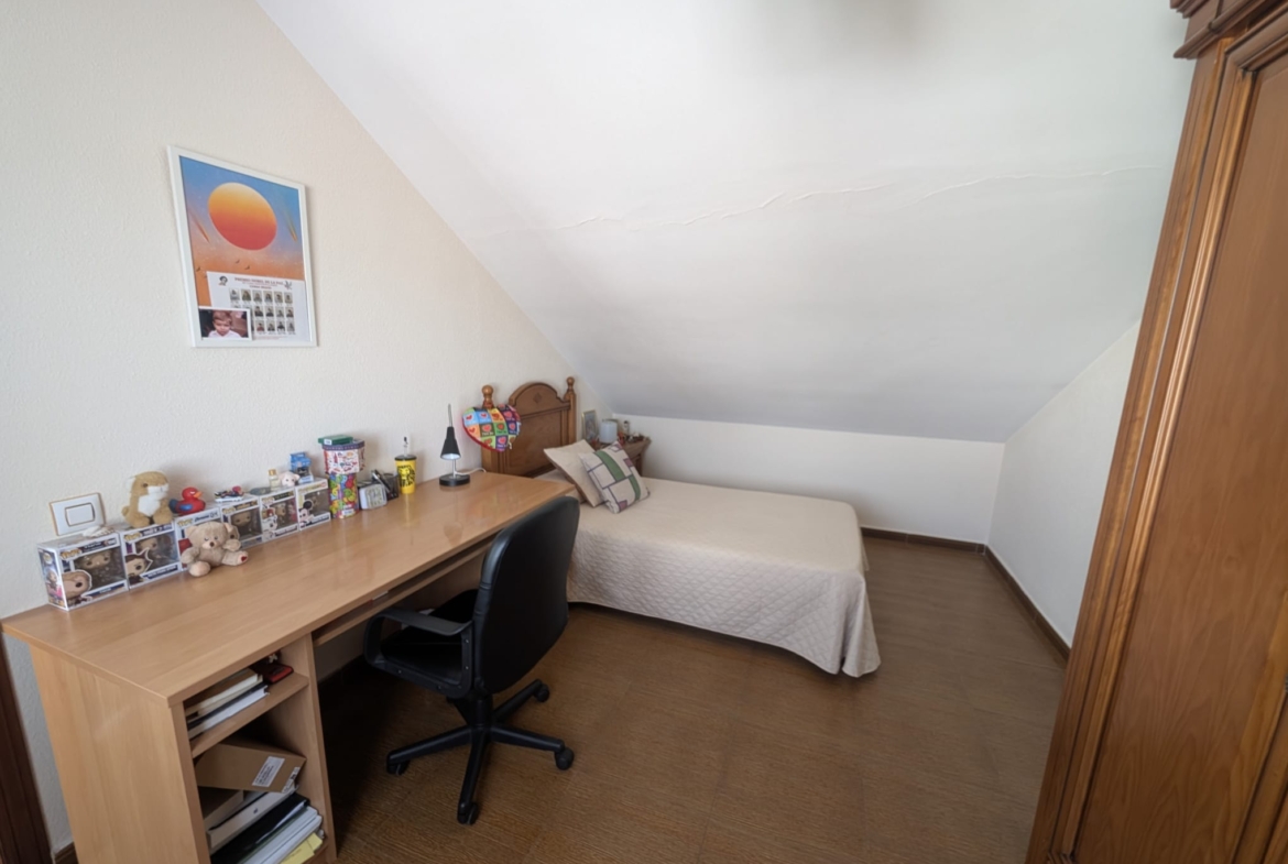 Preciosa casa adosada en ronda del Valle, sótano mas tres plantas. SOTANO, de 70 m2 con trastero, aseo, habitación para la limpieza PLANTA BAJA, cocina comedor, amueblada con electrodomesticos, salon comedor y aseo, desde aqui se accede al sotano. PLANTA PRIMERA, tres dormitorios, todos con armarios empotrados y el principal con baño en suit. PLANTA SEGUNDA, dormitorio abuhardillado, lavadero y terraza.